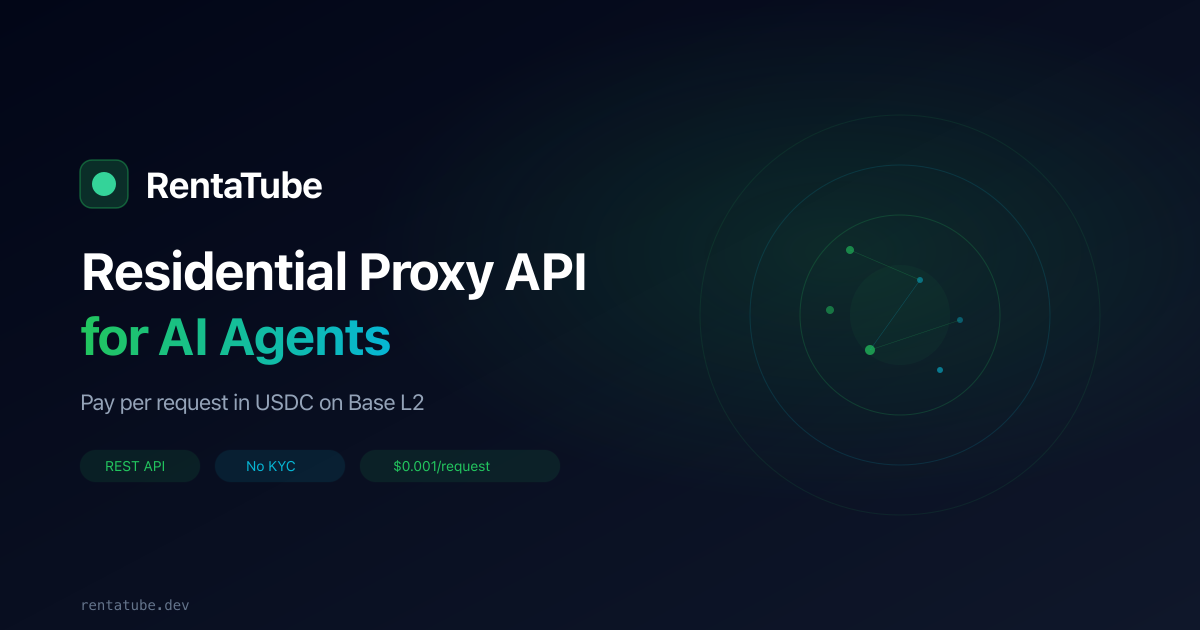 Scrape any website from real residential IPs. Your AI agent sends an HTTP request. It exits from a real home connection. $0.001 per request. No KYC — just a wallet and USDC.